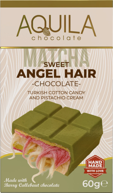 Matcha teás fehér csokoládé vattacukor és pisztácia töltelékkel.