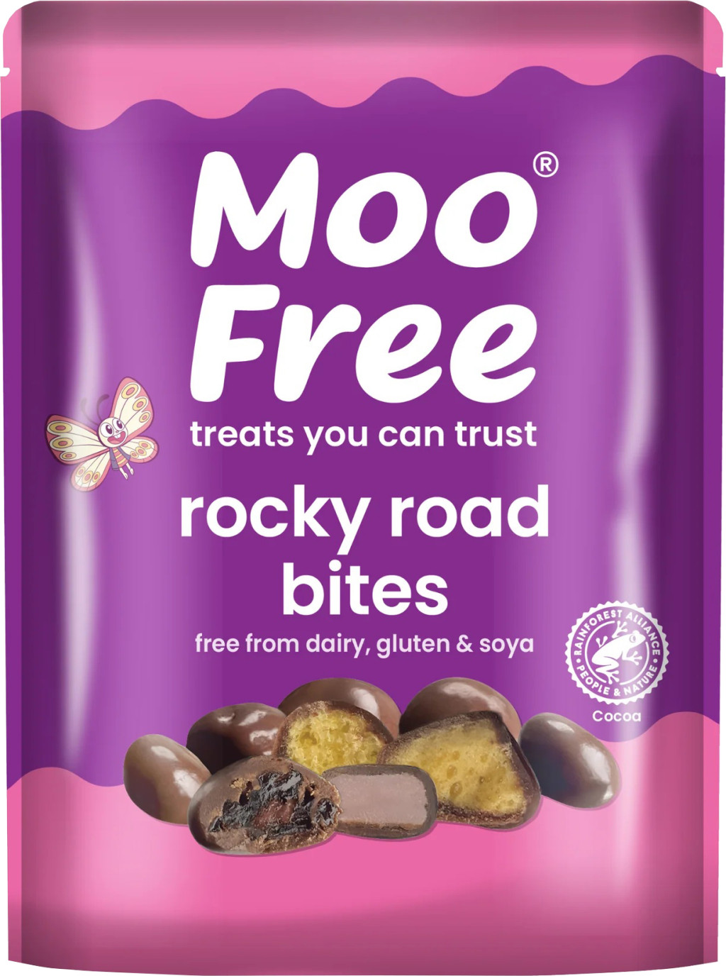 Összetevők: cukor, mazsola, kakaómassza*, shea olaj, rizsszirup, kakaóvaj*, rizskeményítő, rizsliszt, glükóz szirup, kukoricaliszt, glükóz-fruktóz szirup, inulin, víz, emulgeálószer: napraforgó lecitin, térfogatnövelő szer: nátrium-hidrogén-karbonát, dextróz, zselésítő anyag: karragén, tápióka keményítő, só, kukorica keményítő, hidrolizált rizsfehérje, természetes aromák, színezék: céklavörös.