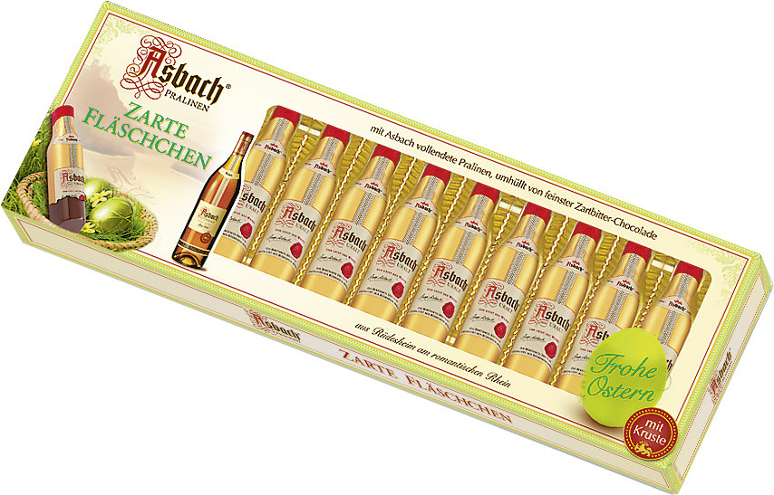 Asbach likőrrel töltött étcsokoládéval bevont desszert cukorkapszulában.