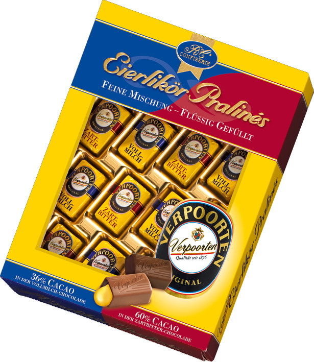 Összetevők: tojáslikőr, cukor, kakaómassza, kakaóvaj, teljes tejpor (19% a tejcsokoládéban), emulgeálószer: lecitinek, természetes vanília aroma. Nyomokban szóját és mogyorót tartalmazhat. Kakaó szárazanyag tartalom a tejcsokoládéban: min. 36%, az étcsokoládéban min. 60%.